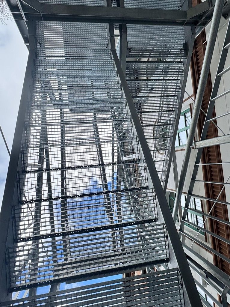 Seit 2015 wird die Brandschutzertüchtigung des Baudenkmals geplant und seit 2017 sukzessive umgesetzt. Einen Schwerpunkt bildeten die Errichtung der 2 Außentreppen aus Stahl für den 2. baulichen Flucht- und Rettungsweg, einen anderen die Installation von Brand- und Rauchschutztüren zum Abschluss der beiden Treppenhäuser von den Bewohnbereichen. Im Zusammenhang mit den beiden Außentreppen wurden Bewohnerbereiche verändert und deren Bäder weitestegehend barrierefrei mit bodengleichen Duschen modernisiert.